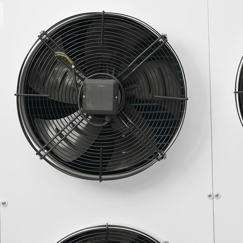 Valinnaiset korkealaatuiset aksiaaliset tuulettimet, joilla on korkeat turvallisuusstandardit, sopivat hyvin yksikkökoteloon.